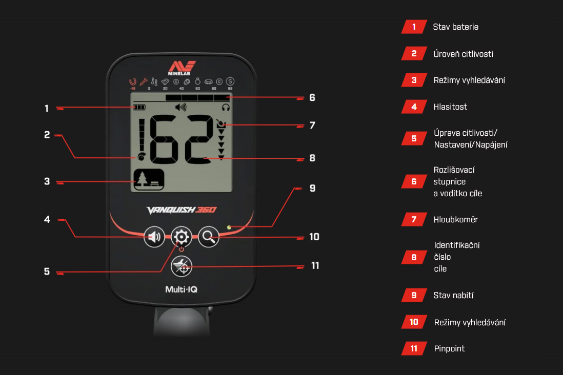 Minelab Vanquish 360 je lehký, plně automatický a vodotěsný detektor kovů s technologií Multi-IQ, která pracuje současně na více frekvencích. Nabízí jednoduché ovládání, přehlednou identifikaci cílů a spolehlivý výkon v parcích, na polích i u vody – ideální volba pro ty, kdo chtějí zapnout a rovnou hledat.
